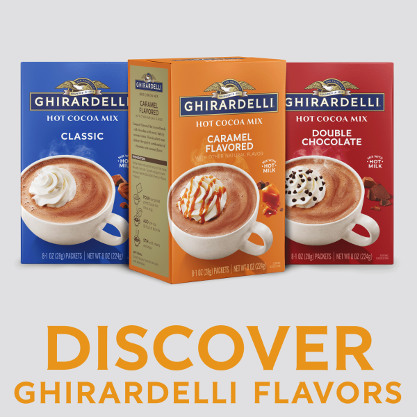 - Includes 64 single-serve 1 oz packets of GHIRARDELLI Caramel Flavored Hot Cocoa Mix (Case of 8 cartons)