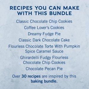 Elevate your desserts with Ghirardelli Premium All-in-One Baking Kit. From fudgy brownies to chewy chocolate chip cookies, add rich flavor and pure joy into every bite of your indulgent creations. This online exclusive All-in-One Baking Kit contains Ghirardelli baking products mentioned in over 30 recipes and includes: