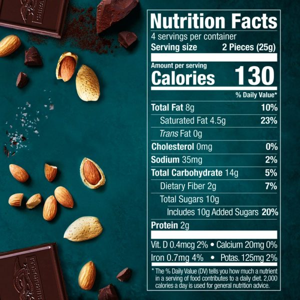 - Intensely rich and delicious dark chocolate infused with a hint of sea salt and crunchy roasted almonds