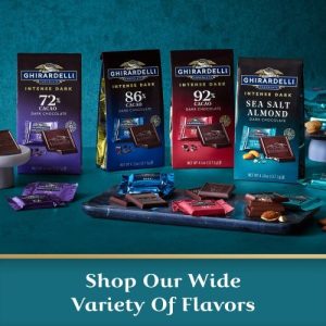 Experience the ultimate chocolate treat with GHIRARDELLI Intense Dark Sea Salt Almond Chocolate Squares. Each square is perfectly balanced with a hint of sea salt and crunchy roasted almonds for a combination of sweetness and texture that will satisfy every craving.