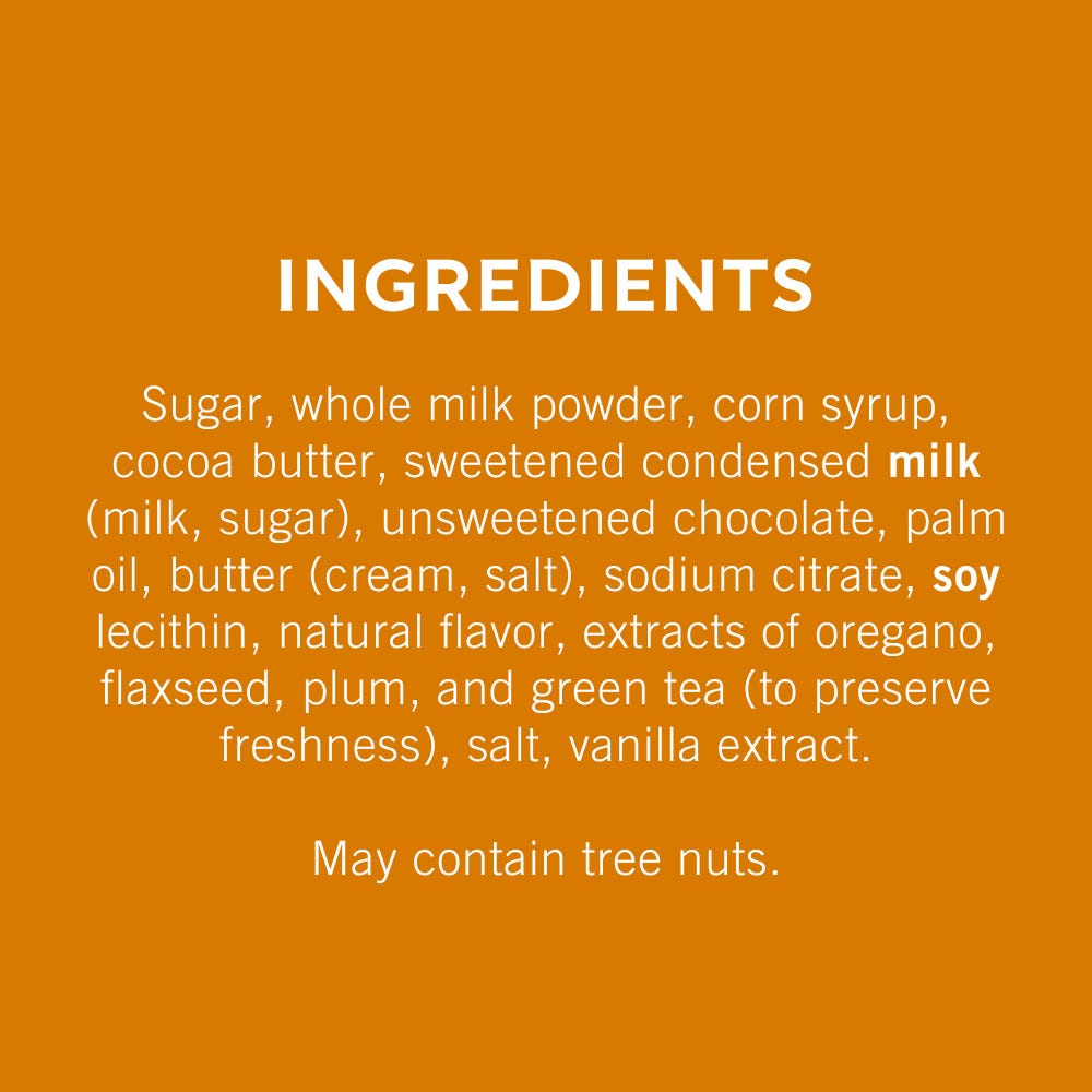 - Luxuriously rich milk chocolate with buttery caramel creates a decadent treat