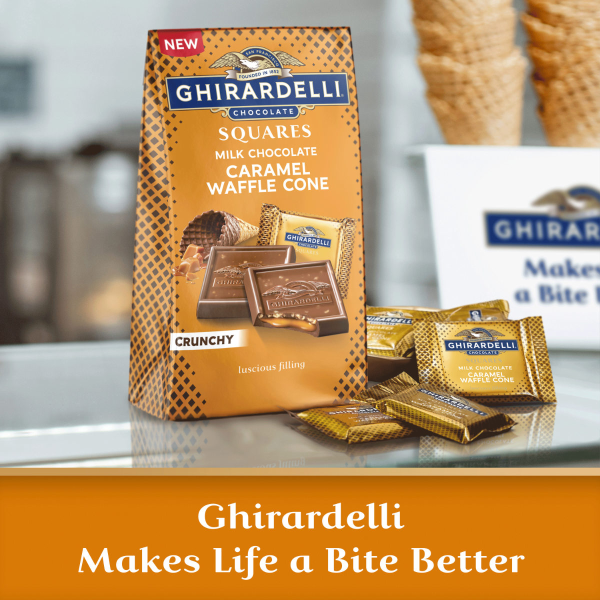 Milk Chocolate Caramel Waffle Cone SQUARES Medium Bag (Case of 6)