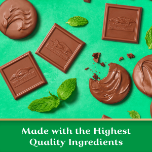- Rich, indulgent milk chocolate with mint and crunchy chocolate cookie bits
